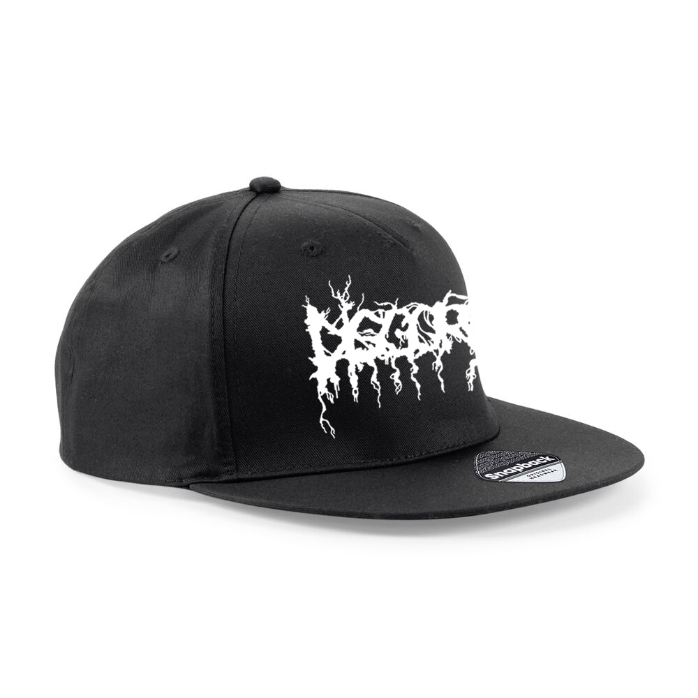 - Embroidered logo on black snapback hat